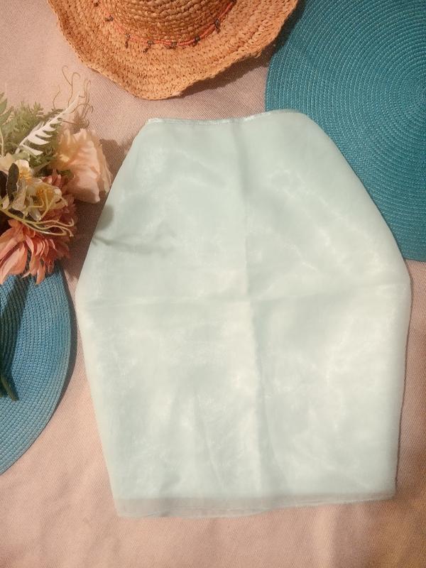 Тканина атлас,зверху органза. Колір м'ята. Все в ідеалі. Довжина 44 Пот 32 Поб 44