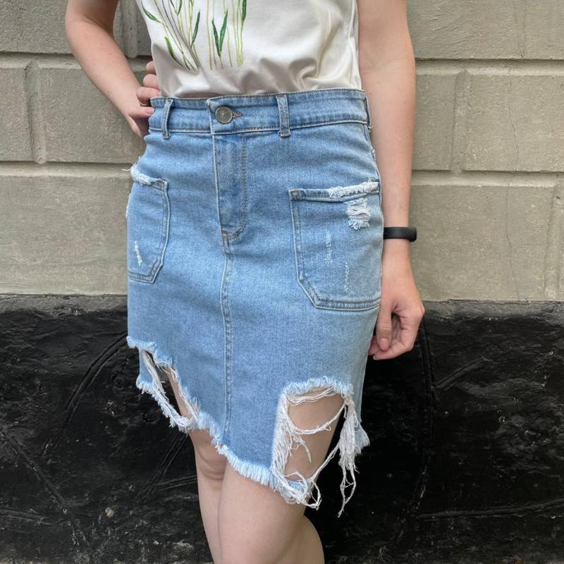 Джинсовая юбка. ОТ 68, ОБ 94, ДОВЖИНА 45.