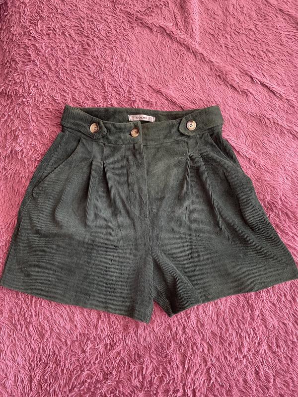 Шорти на високій посадці , смарагдового кольору, тканина вельвет, мають кишеньки