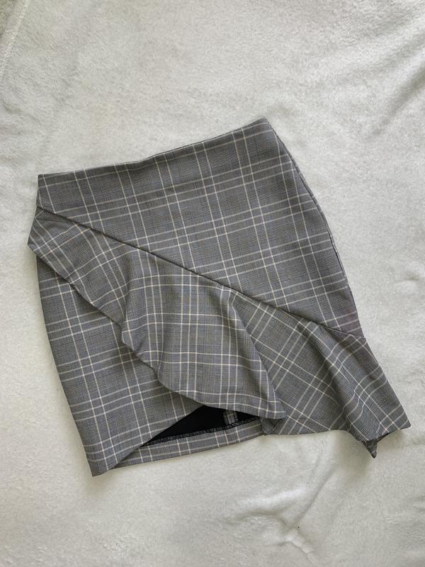 Юбочка H&M в клетку 36 размер Стильная юбка, мини, имеет красивый дизайн спереди, подчеркивает ножки, визуально вытягивает, идеально подойдет для классического стиля, а также можно носить в повседневной жизни. Юбка красиво облегает ягодицы, легкая, не плотная, очень удобная и необычная Добавит изюминку в будничные образы Можно отправить фото на теле🌸 Замеры: Длина - 44 см талия - 35 см Бедра - 45