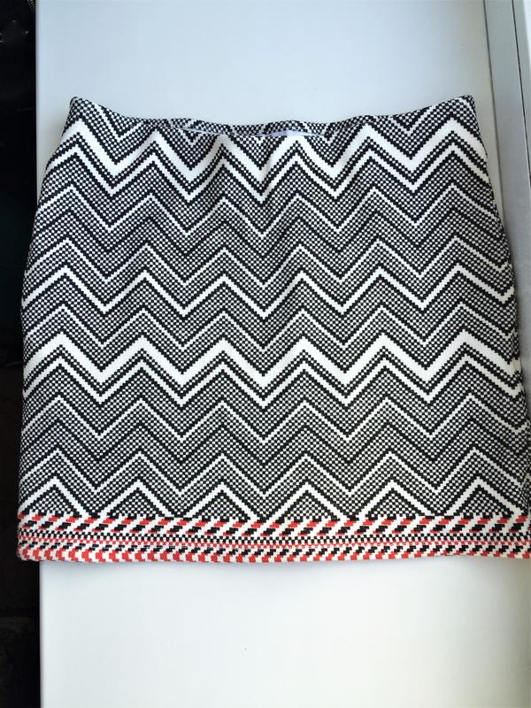 Міні спідниця Zara принт зіг заг р.S, напівобхват пояса 35-44 см, напівобхват стегон 42-54 см, довжина 35 см