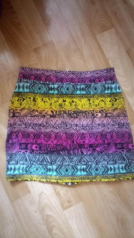 Яркая мини-юбка с модной змейкой на попе Размер eur 36-38 (S-M) Подходит на бедра до 98см включительно Ткань тянется Пояс на резинке Состояние идеальное, надевала 2 раза Длина 37.5 см Пот 32.5см ( пояс тянется ,я надевала на талию 70см)