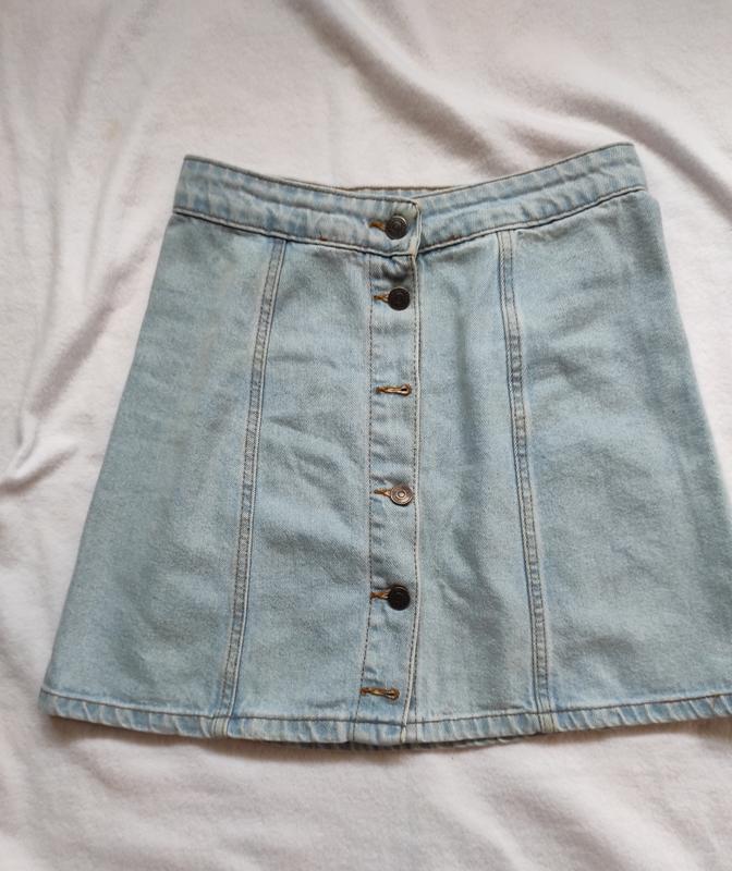 джинсовая юбка на пуговицы, длина 44, талия 73, бедра 100