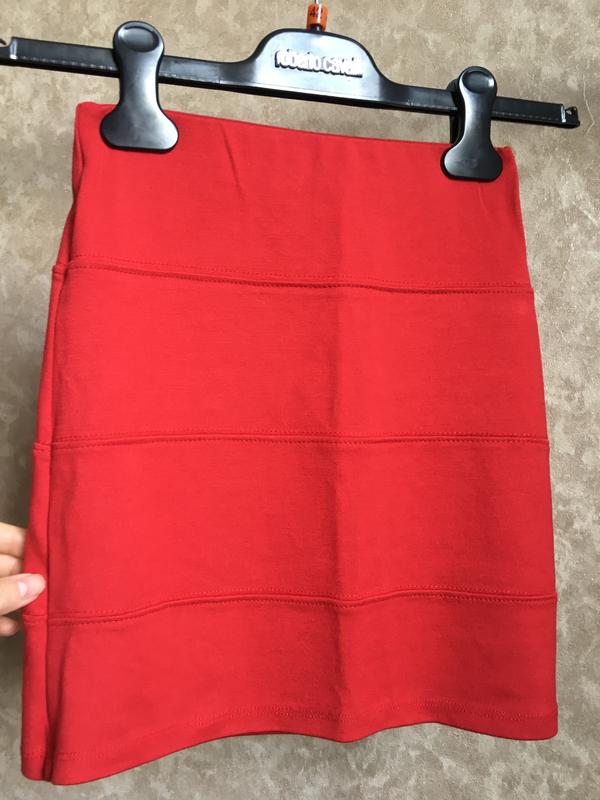 Стрейчева, дуже гарно тягнеться , на високій талії. Підкреслює фігуру . На талії зсередини резинка . Вдягнена один раз . Талія 52см , стегна 68 см . Довжина виробу 35 см .