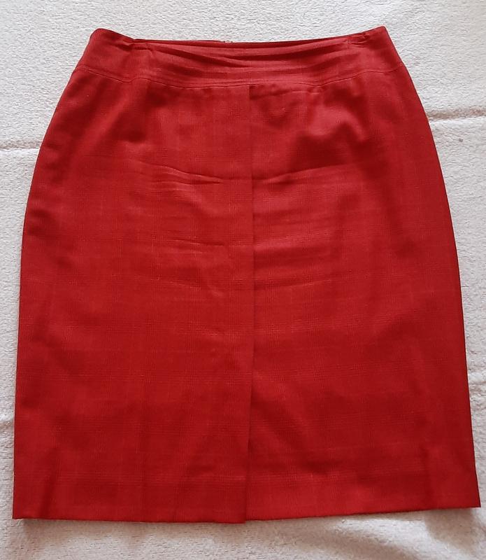 Спідниця в діловому стилі. Пошита на замовлення. Є підклад та розріз позаду. Застібається на блискавку. Довжина 52см Напівоб'єм талії 42см Напівоб'єм стегон 53см