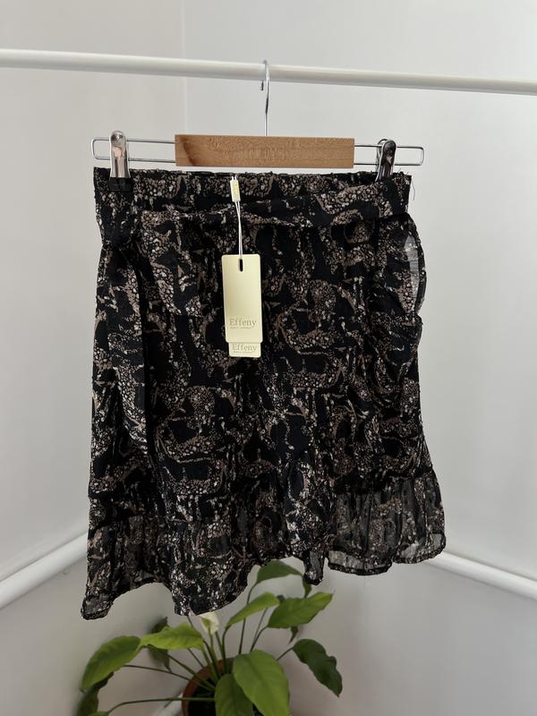 Юбка на высокой талии очень красивый фасон Имеет плотную черную подкладку Сбоку застегивается на невидимый замок По бирке цена 30 евро Размер - с Замеры: Длина( высокая посадка)- 48 см ПОБ- 47 см