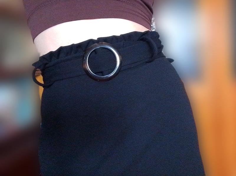Черная мини-юбка. В талии резинка и ремень. Размер S-M. На талию 66-73 см и бедра 90-100 см.