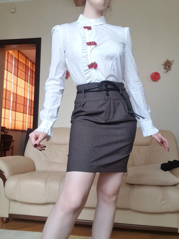 Коричневая юбка с защипами, на пуговицах, размер на бирке - М