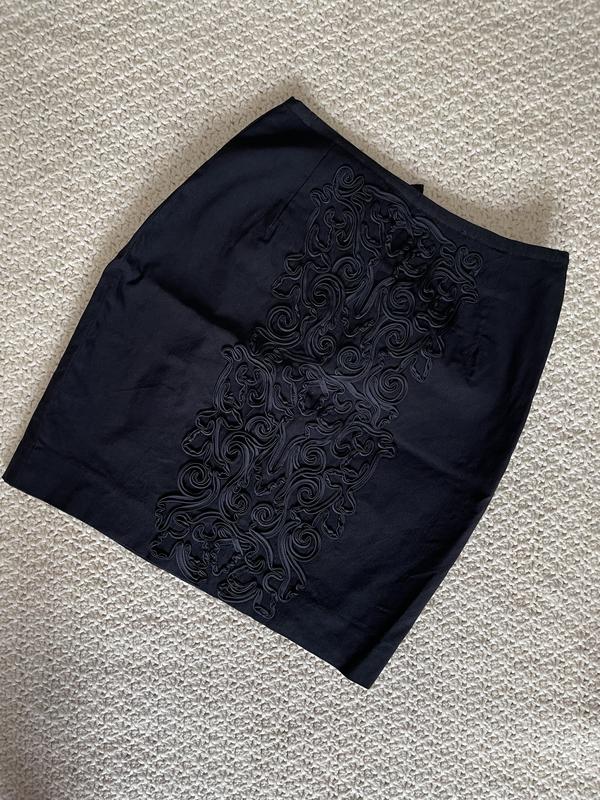Изысканная юбка классического кроя, украшенная спереди красивым орнаментом. Подойдет на размер М.