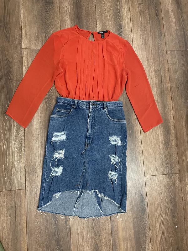 Юбка джинсовая, размер М - 350 грн. Блуза Mango шифоновая из-зади с красивым не большим вырезом, размер М - 350 грн. Все в идеальном состоянии. Дополнительная информация, замеры в приват.