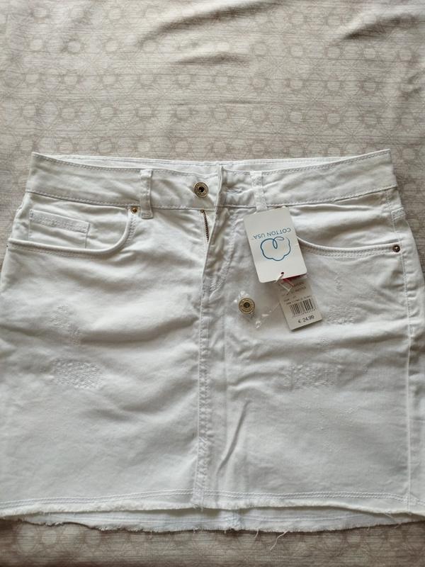 Продам новую джинсовую юбку, белоснежного цвета.Привезенная из Италии.Размер 43.Длина 40см,ширина-49см.