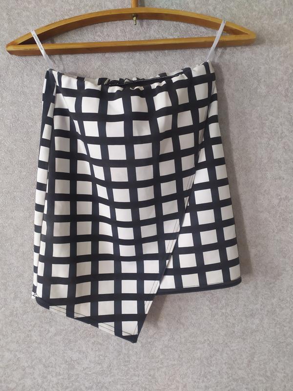 Юбка в клетку короткая мини с одной стороны асимметричная брендовая Atmosphere Имеет небольшие недостатки (удавно на фото)