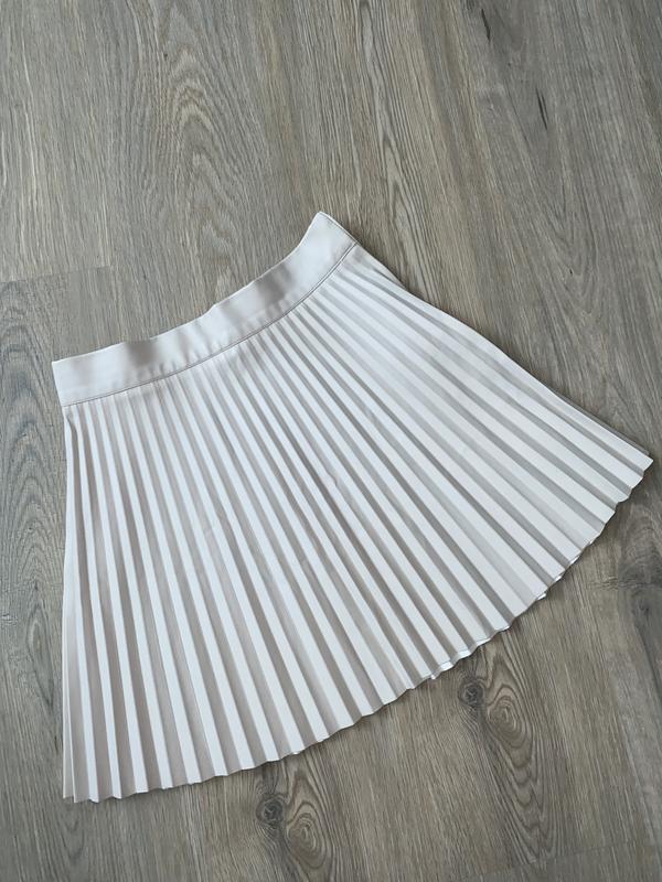 Шикарная юбка из искусственной кожи, очень стильная. Размер xs, пот 29.5 см, длина 39. Есть фото на мне, гортайте. Цвет молочный/бежевый что-то между этими оттенками. Состояние идеал.