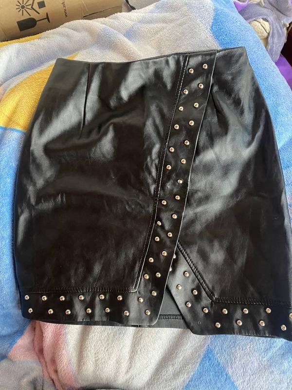 Юбка женская из эко-кожи. Стан хороший. Есть не значительные дефекты на фото видно. Размер S.