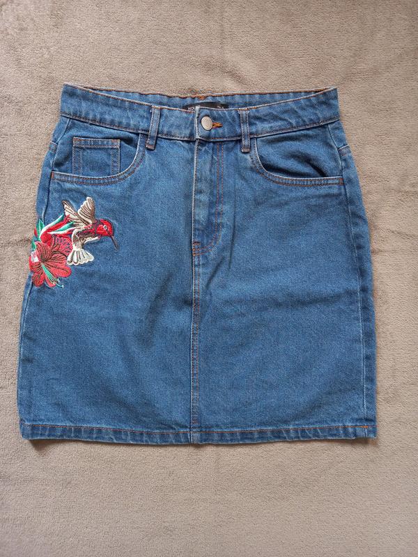 Джинсова спідниця міні в ідеальному стані. Дуже гарна, з вишивкою. Обміри: напів.талія 36см, напівбедра 45 см, довжина 41 см. Не тягнеться, плотенька, буде мати ефект корекції фігурки.
