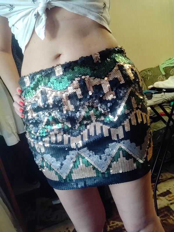 Спідниця з пайєтками Одягалась 1 раз, стан нової речі Розмір М ПОТ 41 Довжина 40