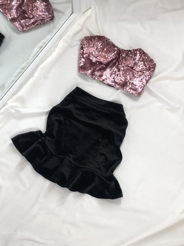 📌В посте две вещи📌 🏷 269грн Мега крутой топ в пайетки😻 В идеальном состоянии❗️ Размер указан М, больше С(на грудь 1,5-2 размера) 🏷 299грн Стильная велюровая юбочка🖤 В идеальном состоянии❗️ Размер Хс, небольшой С По деталям в дырект💌