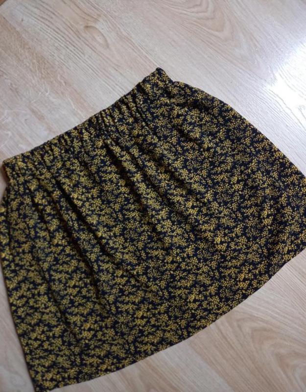 Очень красивая, единственная минус зацепка у пояса, на фото указана. По бокам карманы. Длина 46см, пояс 38 тянется до 60см, бедра 56см, ширина по низу 68см.