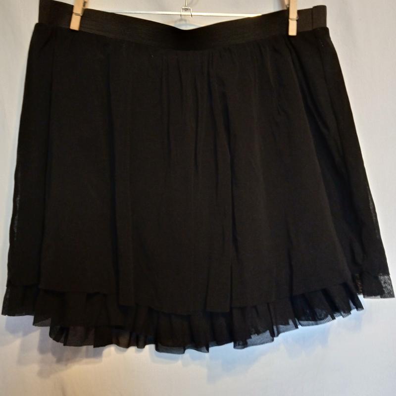 очень красивая, нарядная, черная,бренд GEORGE, на коттоновой подкладке,оригинальная,пояс на широкой,черной 3,5см резинке,пояс хорошо тянется, длина юбки43см,пояс в спокойном состоянии40, тянется50.