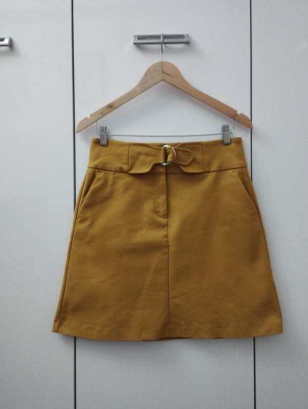 Юбка горчичного цвета, кроя трапеция, ткань немного тянется, по бокам есть карманы, ориентируйтесь на замеры. ПТ 37 ПБ 48, тянется до 52 Длина 48