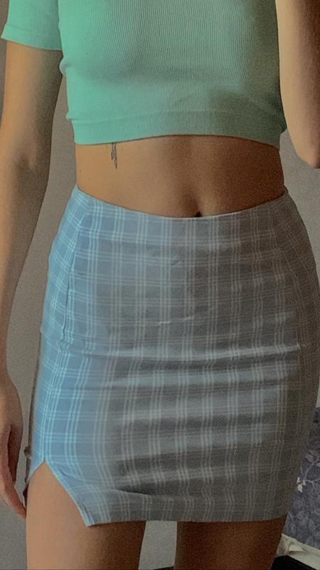 Юбка в клетку, в нежном голубом цвете. Хорошее состояние, ни разу не ношена. Красиво подчеркивает фигуру