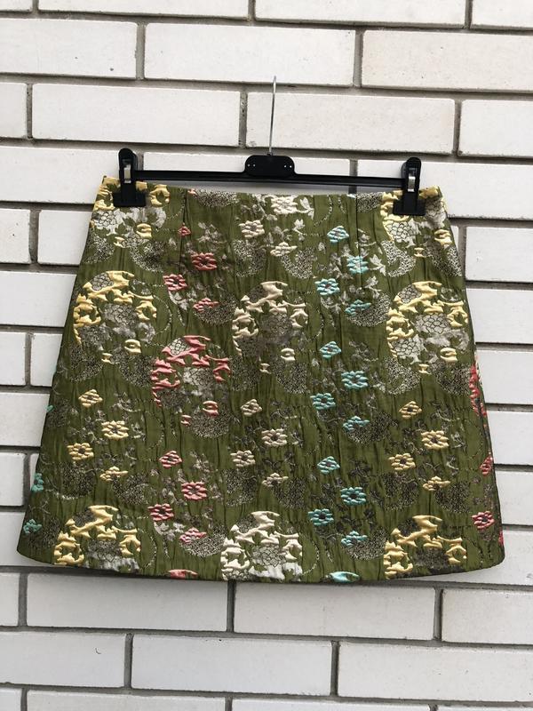 Жаккардовая мини-юбка а-силуэта от marks & spencer с металлическим эффектом.
