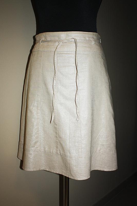 Юбка с "золотым" напылением" ( на фото, к сожалению, не видно, даже на крупном ), р.38 ( евро ), пр-во фирмы "ORSAY" ( Польша ), материал - 70% хлопок, 30% лен, подкладка - 100% полиэстер, цвет нежно-желтый, длина 55 см, талия подчеркивается пояском. В хорошем состоянии.