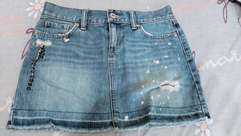 спідниця джинсова, розмір не вказано, дивіться заміри. трішки ручна робота. є нюанс на останньому фото пляма маленька