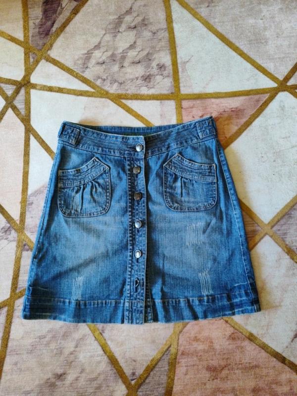 Полуобхват талии 40см, джинс с добавлением стрейча, тянется до 45 см длина юбки 50 см