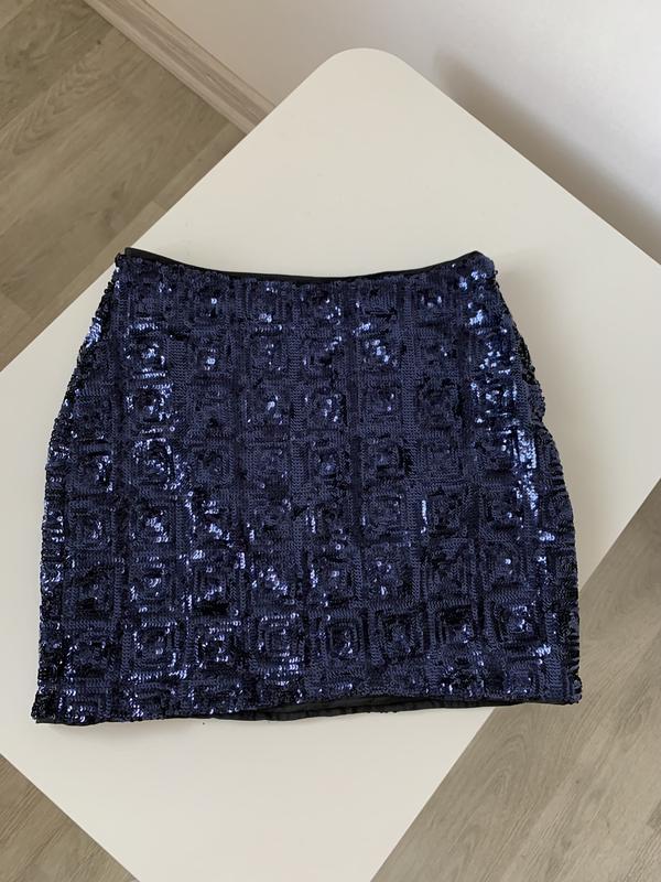 Спідниця в пайетки від H&M Розмір 34 Збоку є блискавка Довжина 37 см, напівобхват талії 34 см, напівобхват стегон 44 см Стан ідеал