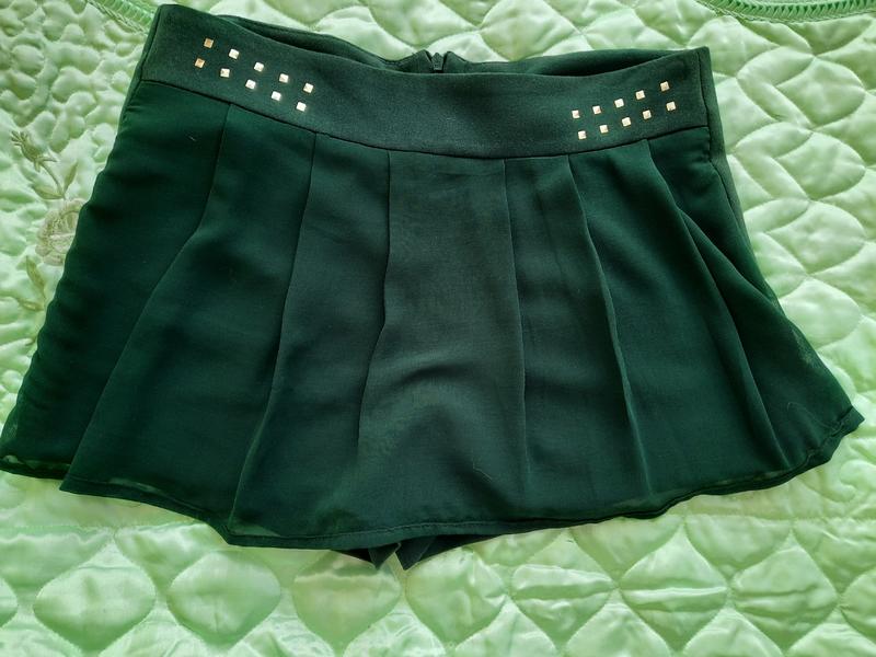 Шорты юбка,гарного зеленого цвета. размер 44. 78% POLYESTERE 17% VISCOSA 5% ELASTOMERO INSERTO. 100% POLYESTERE MADE IN ITALY