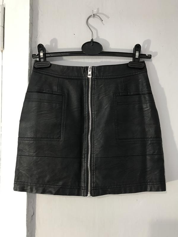 Кожаная юбка мини, молния спереди металлическая, качественный кожзаменитель