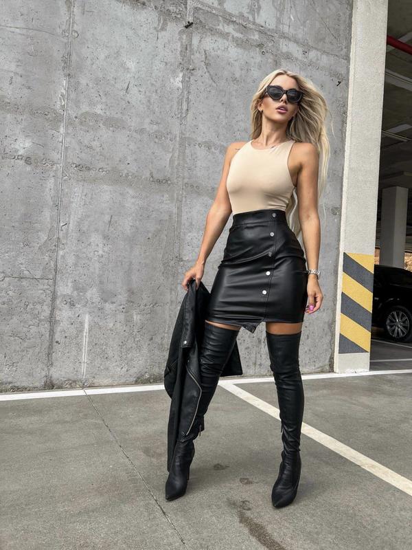 ● Юбка ● Цена 485грн ● Артикул : RG6210/795 ● Цвет: черный ● Тканина : кожзам ● Размер : 42-44, 44-46 ● Мы на связи 24/7 ● Отправка: пн, ср, сб