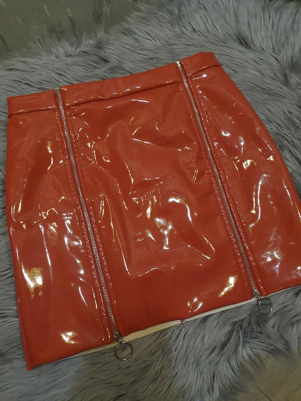 латексная оранжевая юбка 2 молнии полностью остегиваются по длине 40см