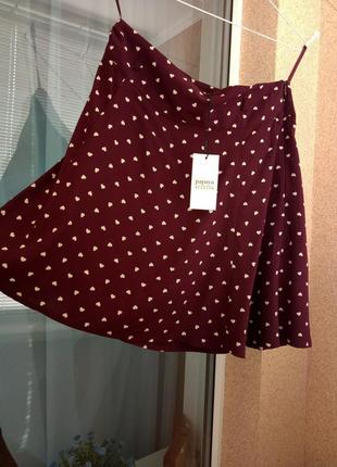 Модная бордовая юбка Papaya в мелкие сердечки. С биркой. Идеальное качество. Отлично смотрится на теле.