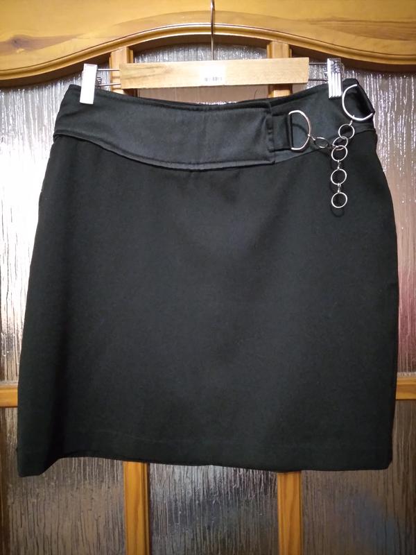Спідниця чорного кольору від e-vie. Тканина 96% поліестер, 4% eластан. Розмір 10, EURO 38. Без підкладу. Застібка блискавка 17 см. ЗАМІРИ : Напівобхват талії- 38см(носиться трохи нижче талії). Напівобхват стегон- 49 см. Довжина спідниці- 46 см. Стан ідеальний.