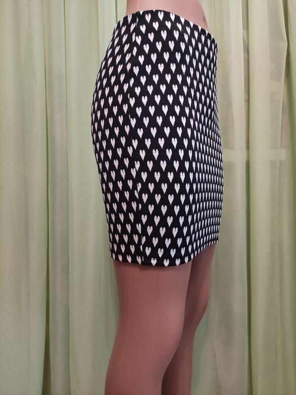 Юбка трикотажная черная с белыми сердцами - горошками. Хлопок / полиэстер / эластан. Длина 41 см, талия 34 см + (полуобхват). талия на резинке. Поб 40 см + , хорошо тянется,