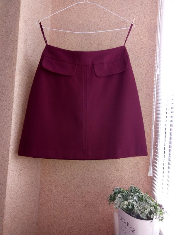 Модная юбка А-силуэта New look. Актуальный цвет - марсала. Имитация накладных карманов. Полуобхват талии - 35 см, Полуобхват бедер - 47-48 см + ткань немного тянется, Полуобхват по низу юбки - 54 см, Длина юбки - 44 см ))