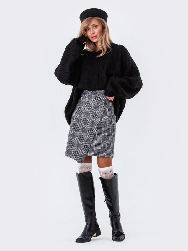 🔥Повсякденна спідниця з імітацією запаху. Декорована ґудзиками. Застібається на приховану блискавку. ✔Розмір:44,46,48,50,52 ✔Довжина виробу - 52 см 🧵Склад: 35% вовна, 35% віскоза, 30% поліестер 🎨Колір: сірий 🧵Матеріал: Жакард 💳Ціна 1250грн Арт617664 ‼️Збір замовлення 1-3 дні ‼️