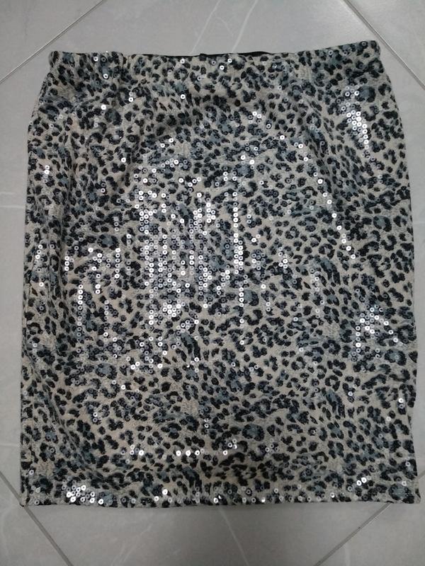 Юбка в пайетки леопардовый принт, длина 47 см полуобъем в талии 39-44 (резинка в поясе) см полуобъем по бедрам 44 см полуобъём по низу 42 см Юбка немного тянется