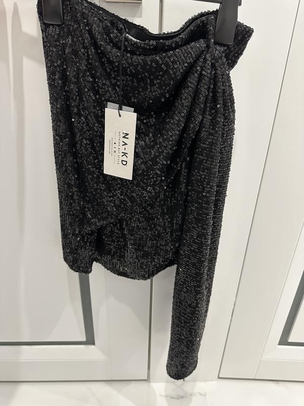 Черная юбка в пайетку 🩷 Мини 🩷 С подкладкой Со стороны юбка удлиненный пояс, благодаря которому можно играть со стилем юбки! Размер: 36/S Новая! Идеальна на праздники🥰