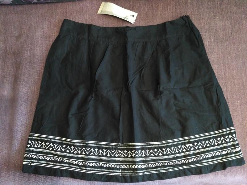 Юбка с вышивкой, производства Индия, на змейке сзади, есть подкладка, посадка чуть ниже талии 39 см, длина 43 см. По низу юбки вышивка.