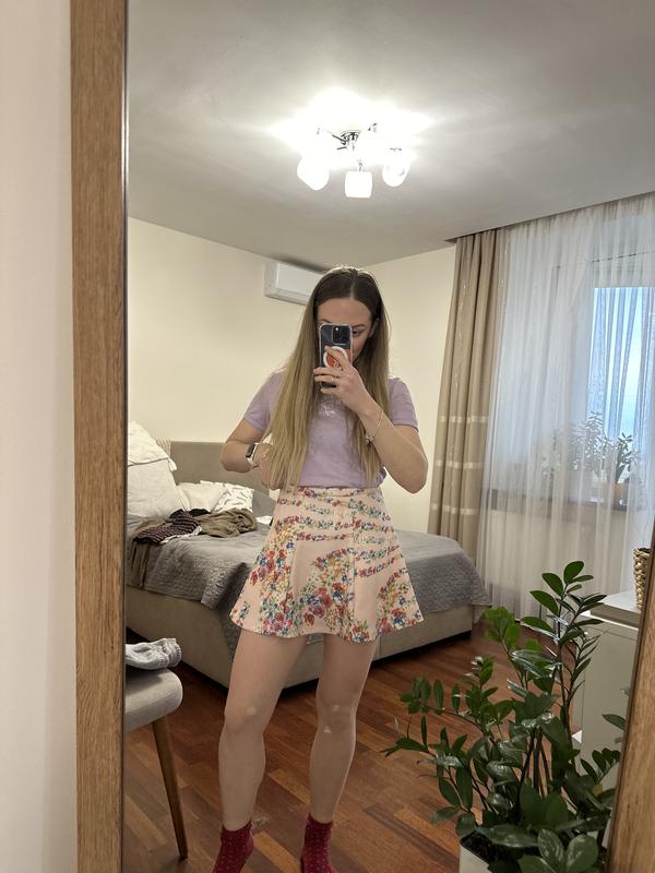 В хорошем состоянии, полиэстер, принт- цветы Размер -S