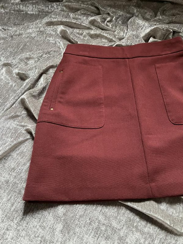 Юбка с накладными полноценными карманами. Модель без подкладки на молнии. Качественный пошив и фурнитура. Красивый бордовый цвет. Бренд - H&M. Размер M. Замеры: ОТ - 74 см. ОБ - 100 см. Длина - 44 см. Нова. Условия отправки и покупки: 🗣Лишь вещи из личного гардероба 🚖Отправка всеми логистичными компаниями 💳Оплата на карту 💯Безпечна оплата Shafa