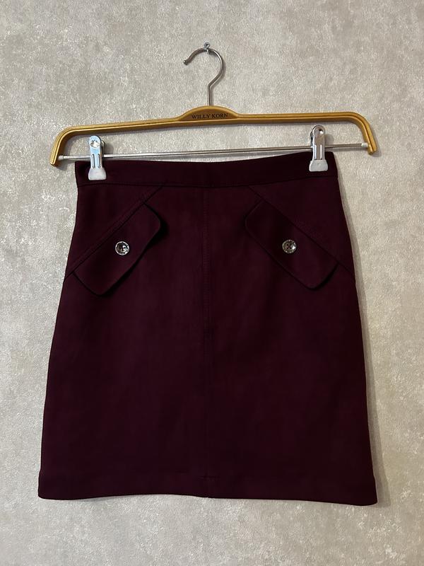 Спідниця насиченого бордового кольору з м’якої бархатної тканини.