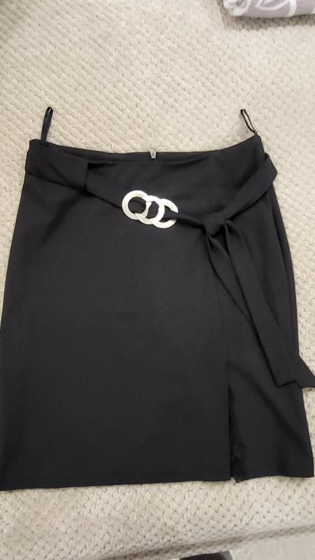 Классическая юбка, заманчивый разрез на ноге, украшен кружевом. Стан идеален.