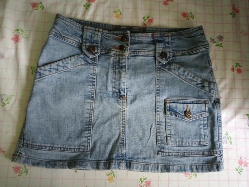 Джинсова спідниця р. 44 англ. р. 10 3 кишені попереду довжина - 32 см ширина в поясі - 39 см п.об - 45 см