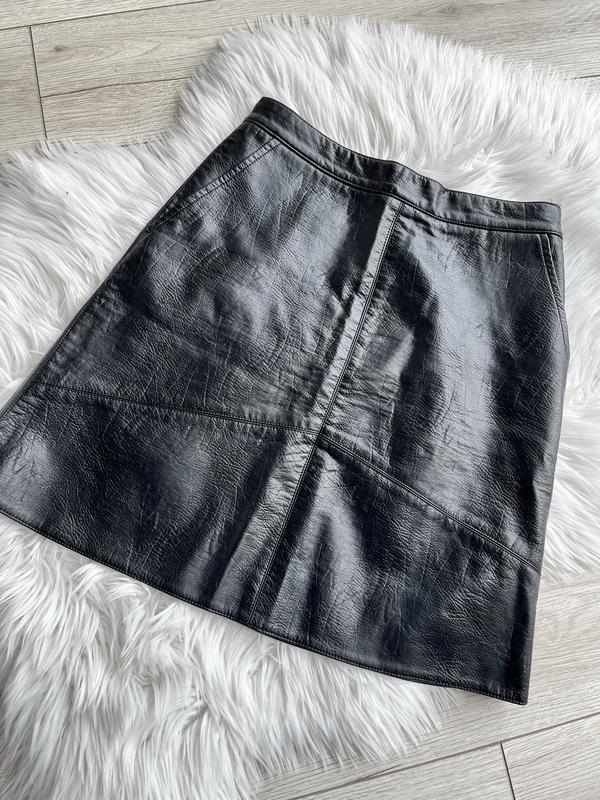 Юбка из плотной эко кожи и карманами. Указан размер XS но подходит и на S. Замеры: пот 33-34 поб-44 длина-44