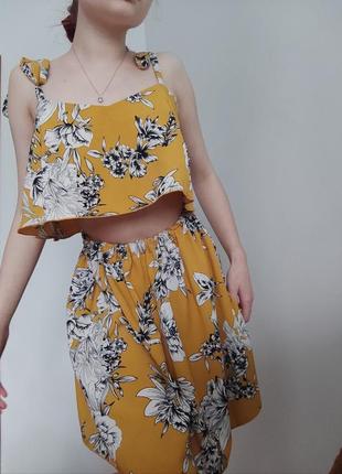 костюм - юбка и топ состояние - новый размер S M костюм состоит: из топа на связках и юбке, костюм свободного кроя. ткань легкая, приятная на ощупь. по замерам и дополнительным фото, обратитесь. 💸Если делаете покупку то на 2 вещь -10% скидки. Берете две вещи, то третья в подарок по цене дешевле🛍️ переходите в мой профиль там много интересного🥰