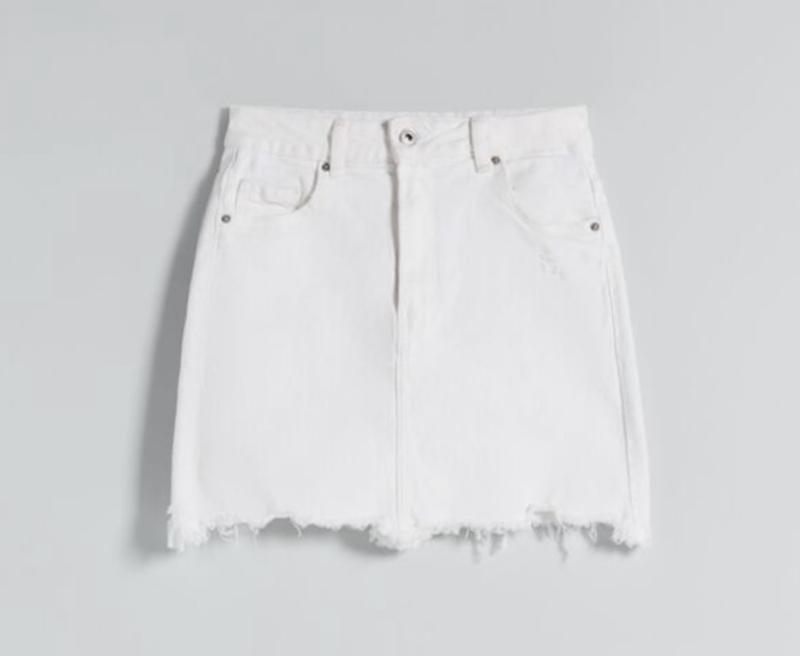 Джинсова спідниця 34(s) Заміри 34: довжина 35 см, талія півобхват 32 см (максимально 35 см), в бедрах півобхват 39 см (максимально 44 см)